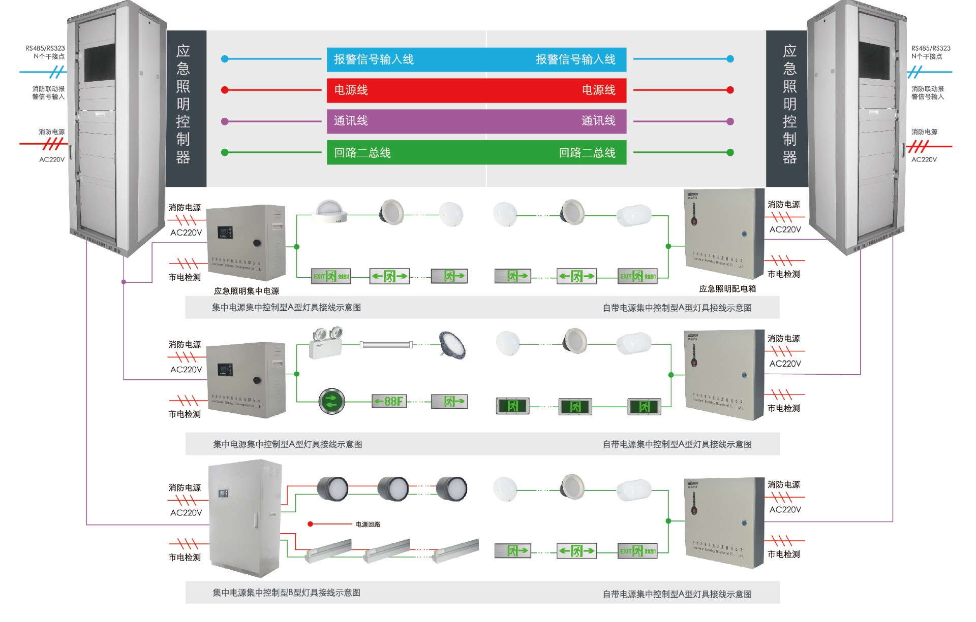 控制器(落地)+電源(A型+B型)/配電箱+集電集控燈具(A 型+B型)/自電集控燈具(A型)