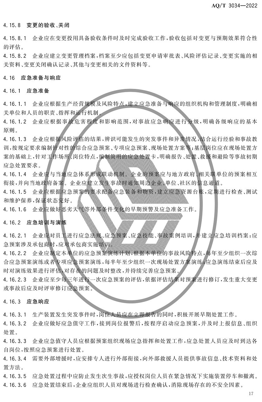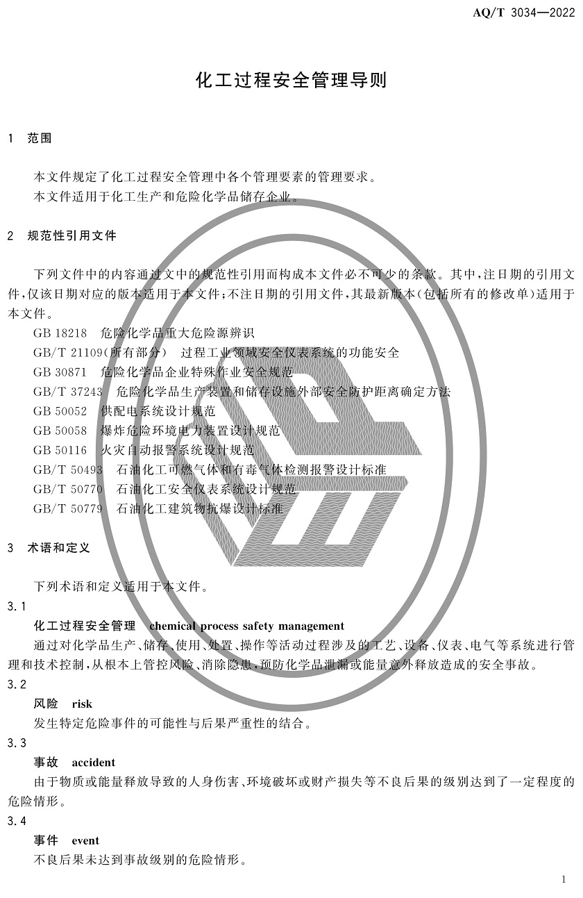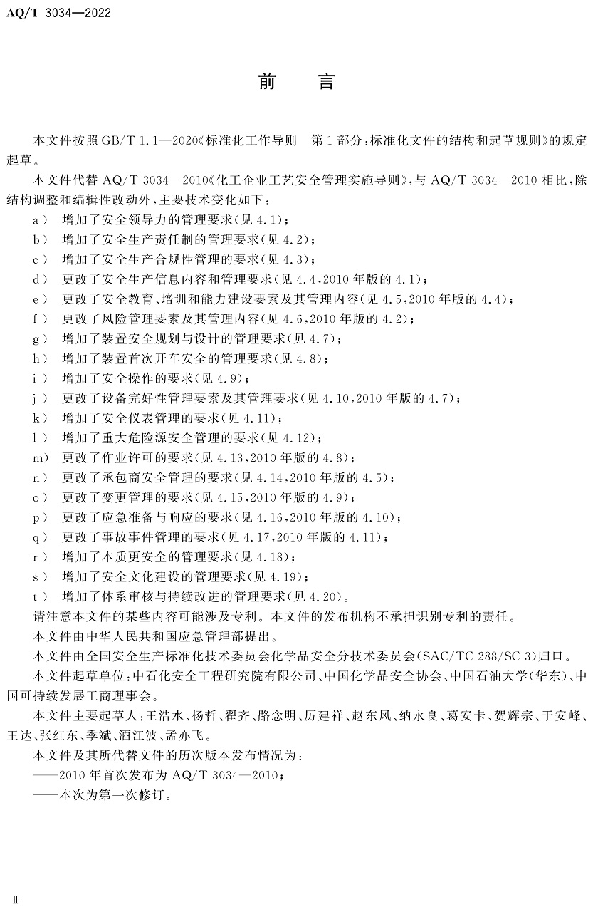 中華人民共和國安全生產行業標準|AQT3034-2022化工過程安全管理導則全文