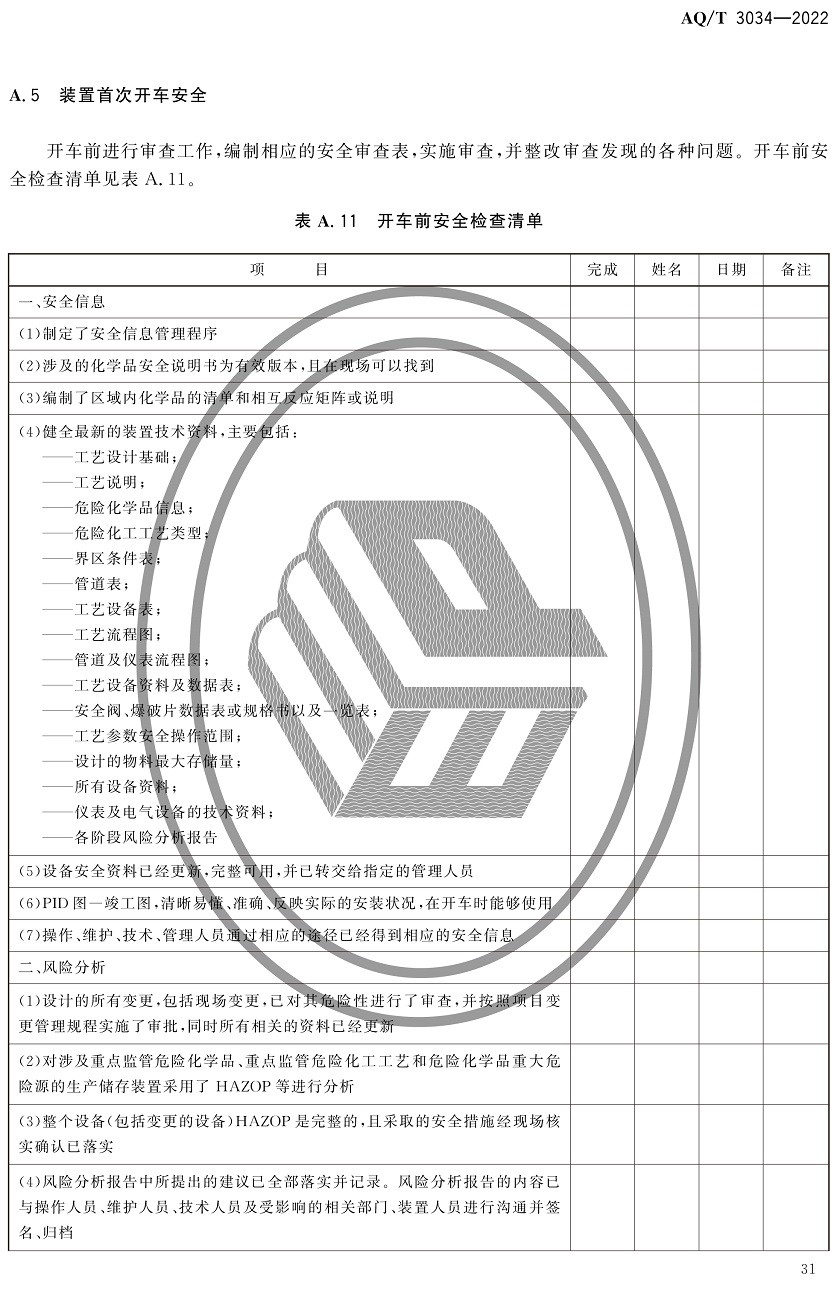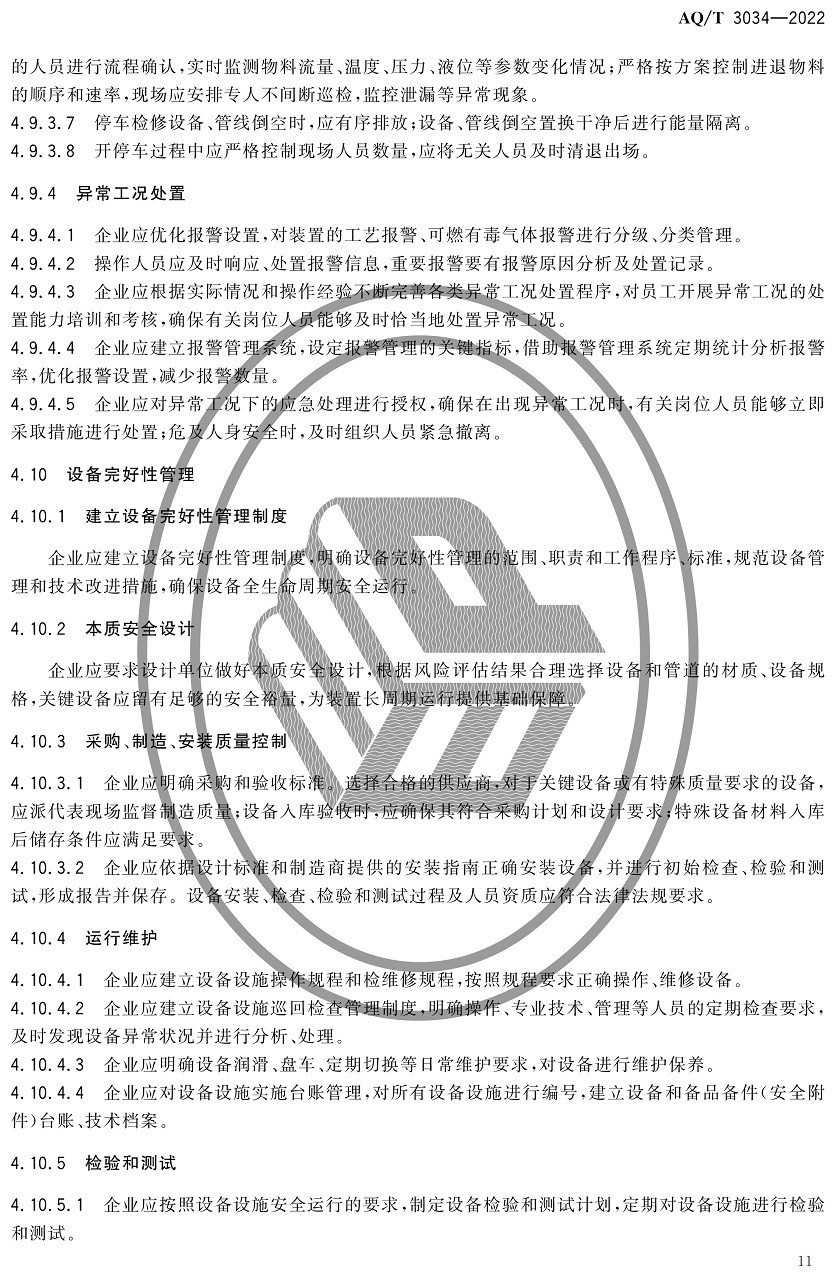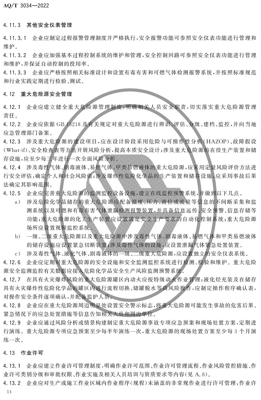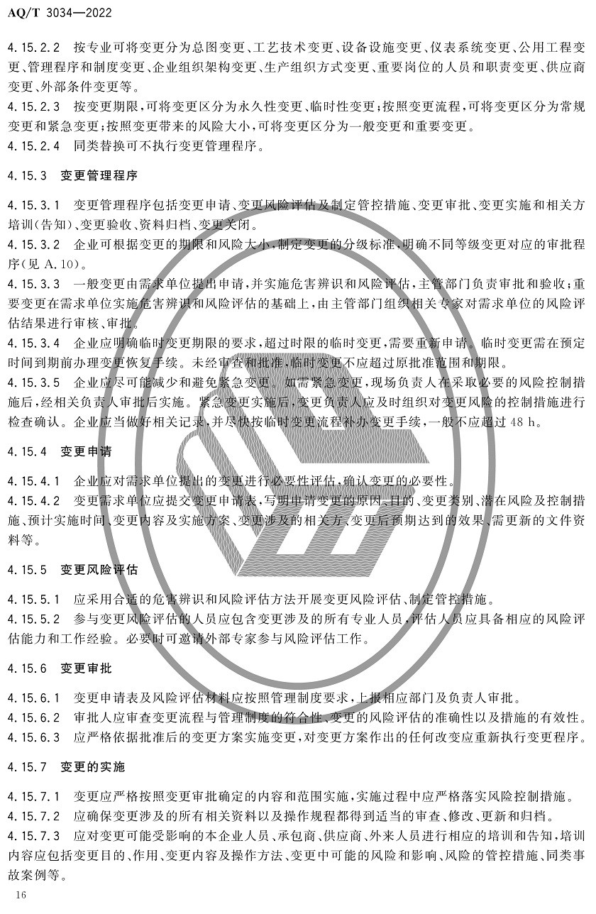 中華人民共和國安全生產行業標準|AQT3034-2022化工過程安全管理導則全文