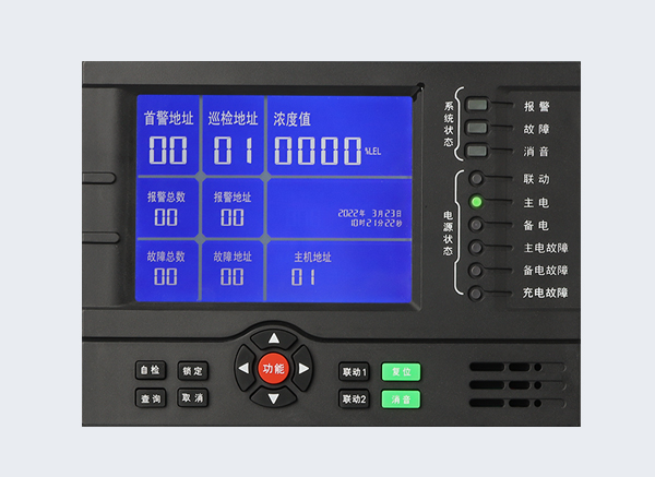 SSK-ZL-60N型氣體報警控制器通過查詢方式獲得探測器信息,經高速CPU數據處理,通過LCD顯示出探測器相應的濃度、狀態并輸出相應的控制器信號。